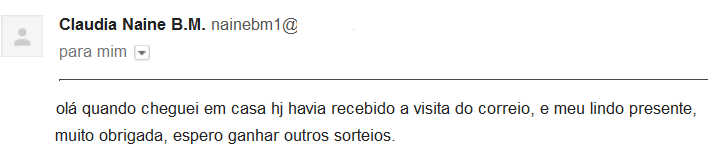 Agradecemos as ganhadoras pelo envio das fotos e pelas mensagens carinhosas. Aos ganhadores que já foram enviados os prêmios e alguns que já confirmamos a sua chegada estamos no aguardo do envio de suas fotos . OK?