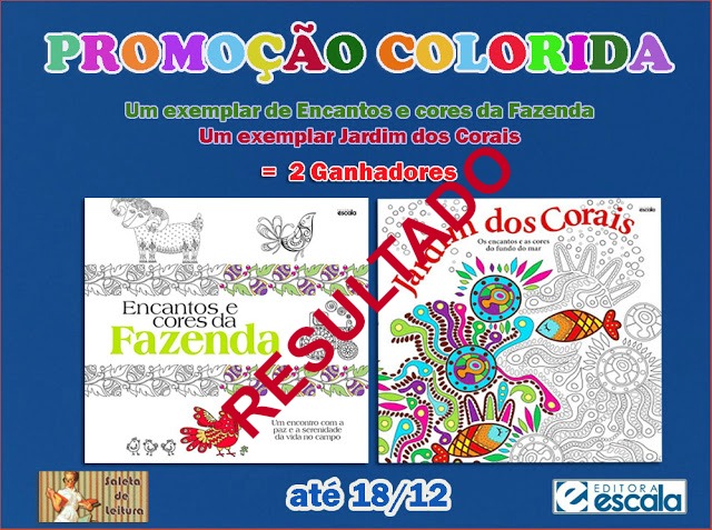 Aqui estamos para anunciar os ganhadores (as) da PROMOÇÃOCOLORIDA. O Prêmio são dois livros para colorir: Encanto e cores da Fazenda e Jardim dos Corais cedido pela Editora Escala. O sorteio foi realizado hoje dia 30/12/2015, pela ferramenta Rafflecopter , e os (a) felizardos (as) foram ...